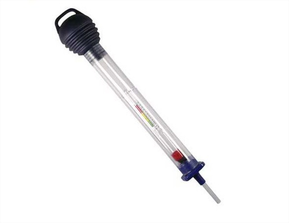 Met behulp van de zuurweger wordt het soortelijk gewicht van het ontlakmiddel gemeten.